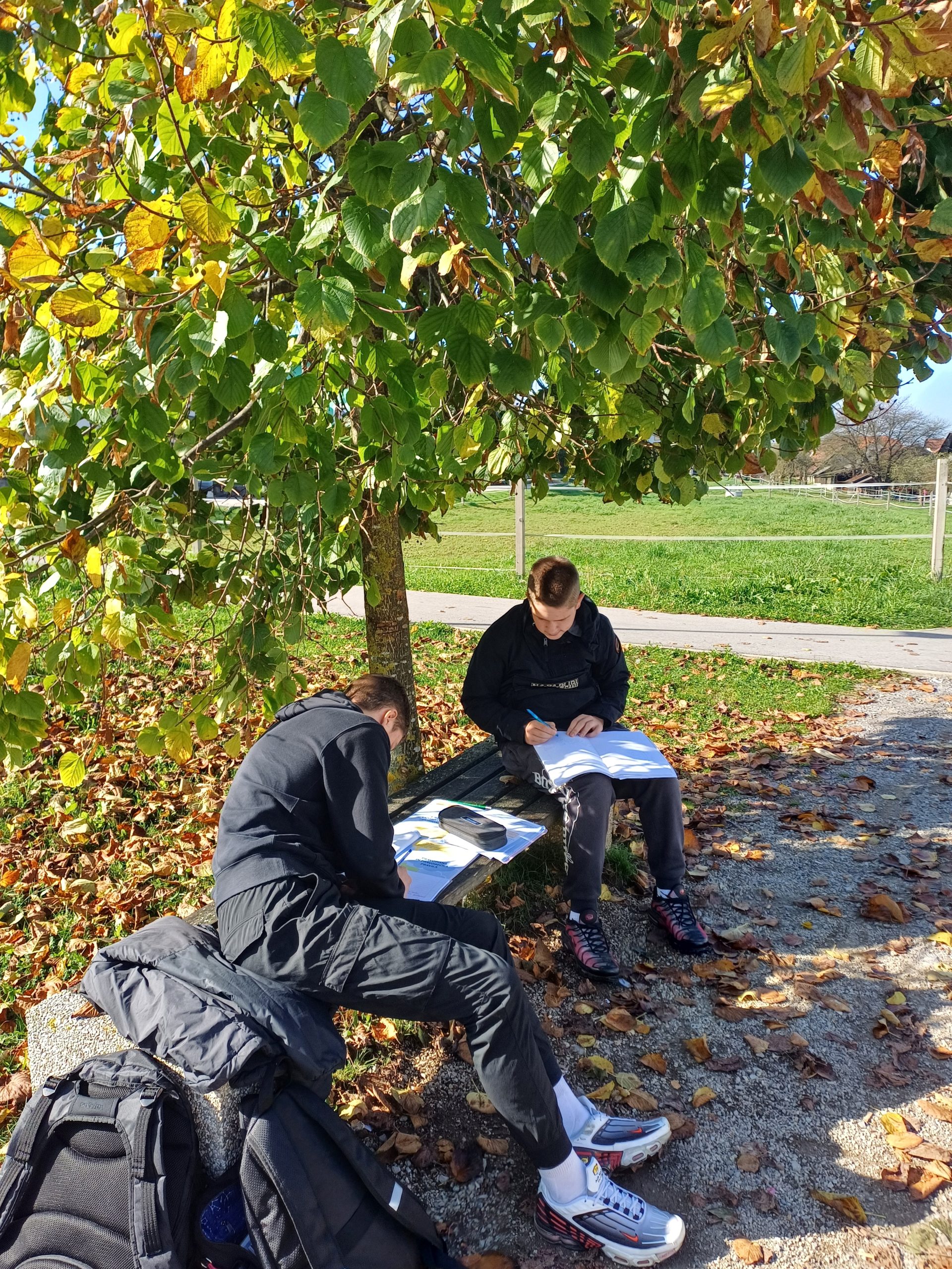 Zakaj pa ne? Odhiteli smo na sonce in reševali vaje kar na klopcah. Morda ni bilo tako udobno kot na stolih, vsekakor pa je bilo bolj prijetno in zato tudi učinkovito. Besedotvorje bo od sedaj naprej naša najljubša snov 😊.