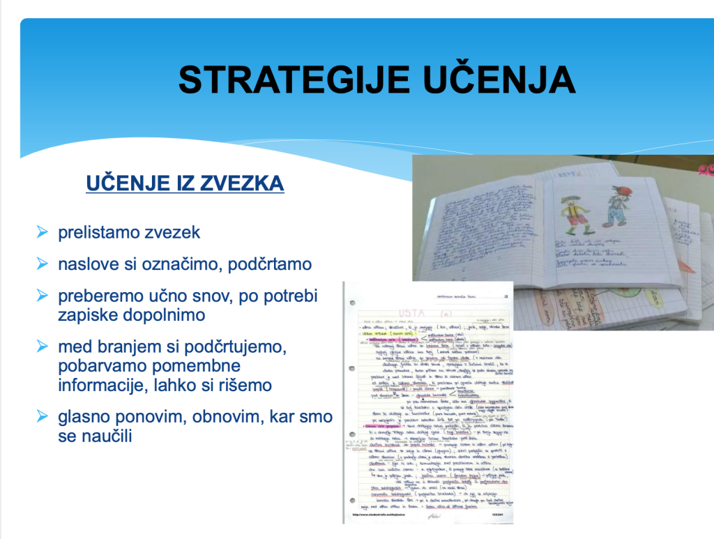 - Razporedim si čas in vrstni red učenja po posameznih predmetih.