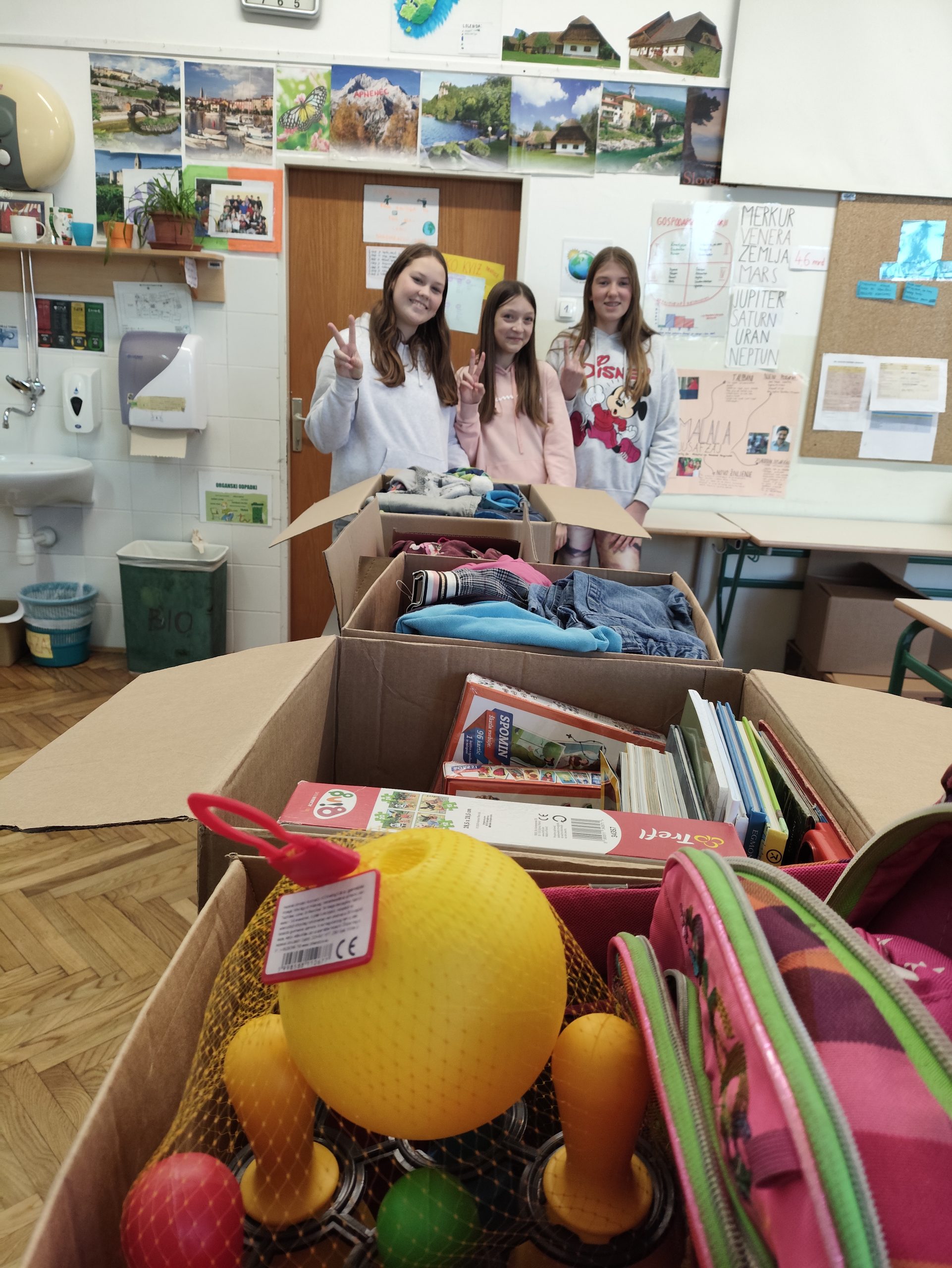 Mladi prostovoljci smo tudi letos na šoli aktivni, jeseni smo pomagali pri urejanju šolskih vrtičkov, v tem tednu pa smo pripravili in izvedli zbiralno akcijo zbiranja higienskih pripomočkov, zvezkov in pisal ter igrač, iger in rabljenih oblačil. Nabralo se je kar nekaj škatel oblačil in igrač, zelo zelo malo higienskih pripomočkov in zvezkov, hrane pa na šoli (kljub želji RK) nismo mogli zbirati zaradi alergij učencev. Organizirali smo tudi izmenjevalnico: 45 učencev je prišlo v izmenjevalnico s kupončkom, nekaj 10 pa le gledat izmenjave. Kar 135 predmetov je dobilo nove lastnike. Sedem večjih škatel nabranih stvari je bilo posredovanih območnemu RK Grosuplje (škatel nismo tehtali).